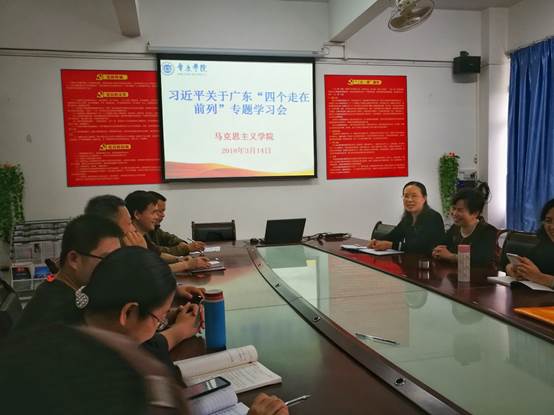 3月14日,公司党总支理论中心组学习扩大会议在院会议室举行,会议由曹顺霞书记主持。党员认真学习了习近平在3月7日参加十三届全国人大一次会议广东省代表团讨论时发表的重要讲话精神。党的十八大召开以来,习近平非常关注广东的发展,从2012年对广东提出“三个定位,两个率先”、2017年提出“四个坚持、三个支撑,两个走在前列”到这次对广东提出“四个走在全国前列”,反映了中央对我省的期望。党员老师表示一定要认真学习习总书记讲话精神,贯彻到自己的教学教研工作中,努力为把我省建设成为向世界展示践行习近平新时代中国特色社会主义思想、展示我国改革开放成就、国际社会观察我国改革开放的“重要窗口”和“示范区”做出应有贡献。