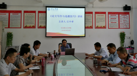 结合公司开展的“不忘初心,牢记使命”主题教育活动,为有效提升球速体育教师科研水平,10月18日下午,球速体育邀请《广东社会科学》杂志社总编江中孝研究员做了“论文写作及选题技巧”专题讲座,球速体育全体教师参加了讲座。
