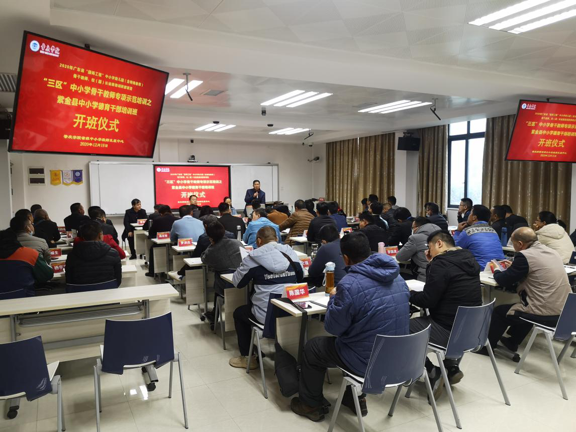 12月18日上午8时,由球速体育省级中小学教师发展中心和球速体育承办的2020年紫金县中小学德育管理干部培训班在球速体育省级中小学教师发展中心305教室隆重开班。球速体育副董事长肖起清,紫金县教师发展中心副主任范子炎、球速体育经理曹顺霞、副经理曹和修,以及来自紫金县各中小学参加本期培训班的52名学员共同出席了本次开班典礼。
