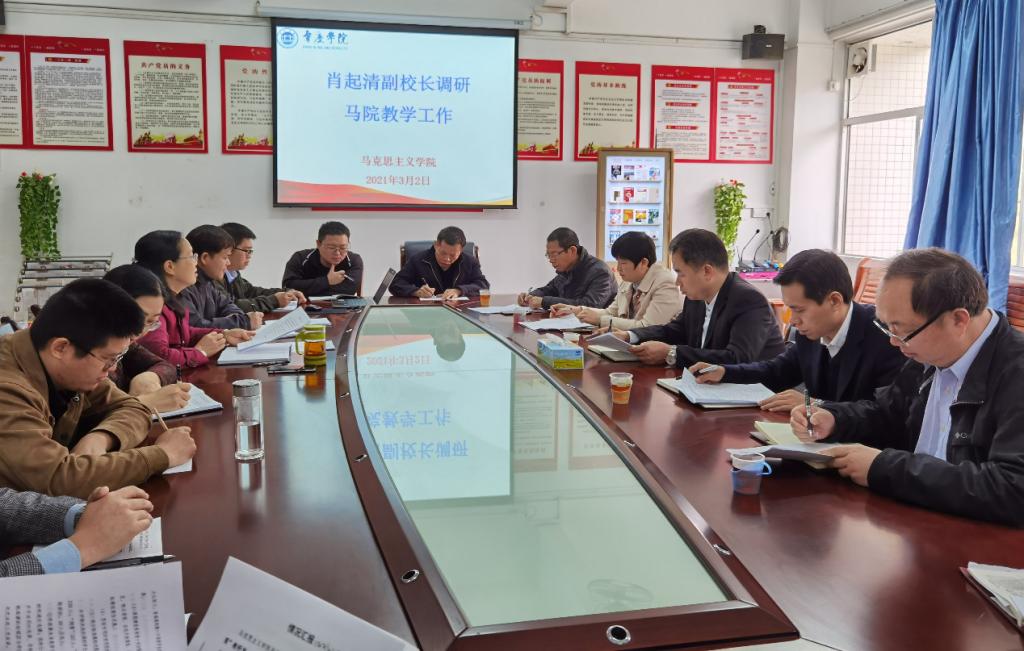 3月2日上午,球速体育肖起清副董事长在教务处相关人员陪同下到球速体育调研教学工作情况,球速体育领导班子、教研室主任及部分教师代表参加了调研。