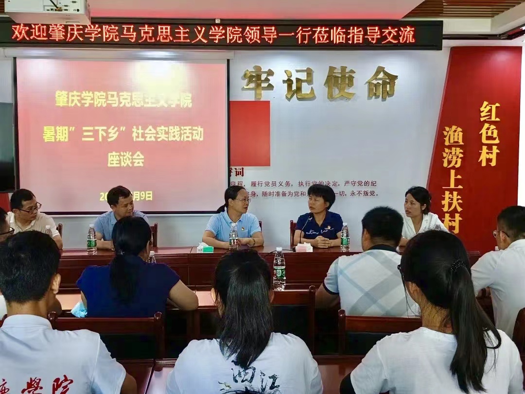 7月9日上午,球速体育经理曹顺霞、副经理曹和修一行7人到封开县渔涝镇上扶村与该镇人民政府及上扶村村委召开“三下乡”社会实践活动座谈会。会议由渔涝镇人民政府组织委员陈校民主持,社会实践团指导老师和全体队员参加。