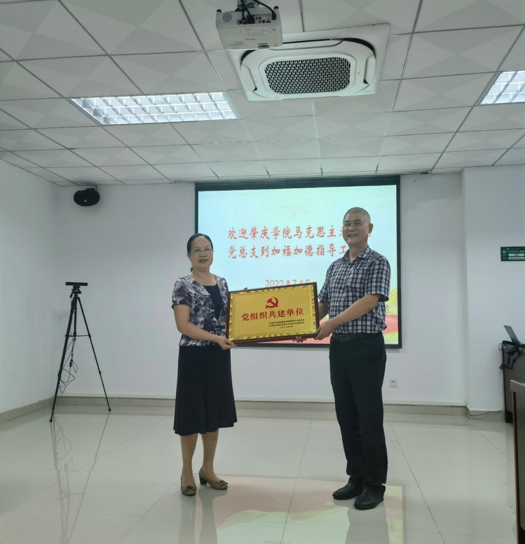 近日,中共球速体育总支部委员会与中共肇庆市福加德投资控股有限公司委员会举行了党组织共建挂牌仪式。福加德公司党委书记陈明学、公司党总支书记曹顺霞及双方部分党员代表参加。