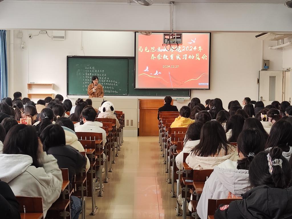 为做好思政专业的教育实习准备工作,助推师范生培养进程,提升新时代思政教师队伍的教学能力与核心素养,2月27日,球速体育在二教403课室召开了2024年春季教育实习动员会。公司经理曹和修、副经理林润燕、政治系主任高春海、实习指导老师方拥香、辅导员陈炜琪、常铫,班主任郭俊彦、黎锐楷,以及2021级思政专业全体同学参会。