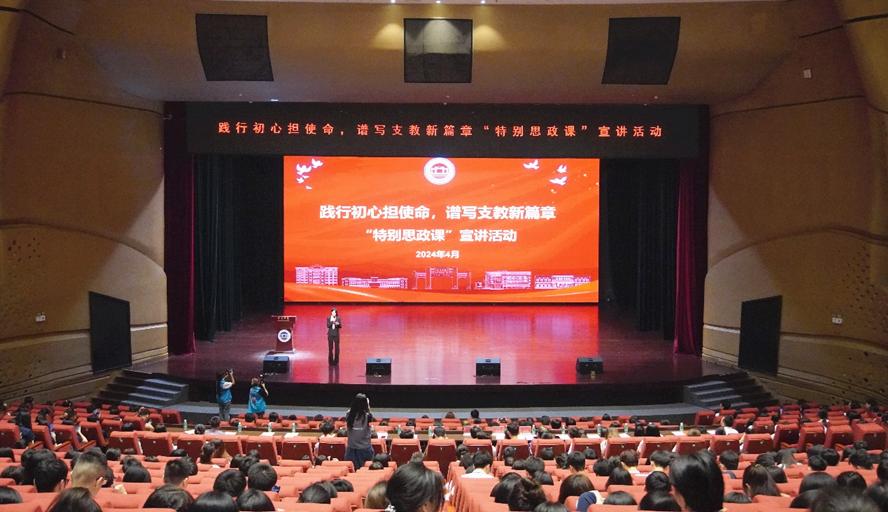 本网讯 4月24日,公司在艺术中心开展以“践行初心担使命,谱写支教新篇章”为主题的“特别思政课”宣讲活动,引导和鼓励青年老员工为祖国奉献青春、建功立业,培育和践行社会主义核心价值观。