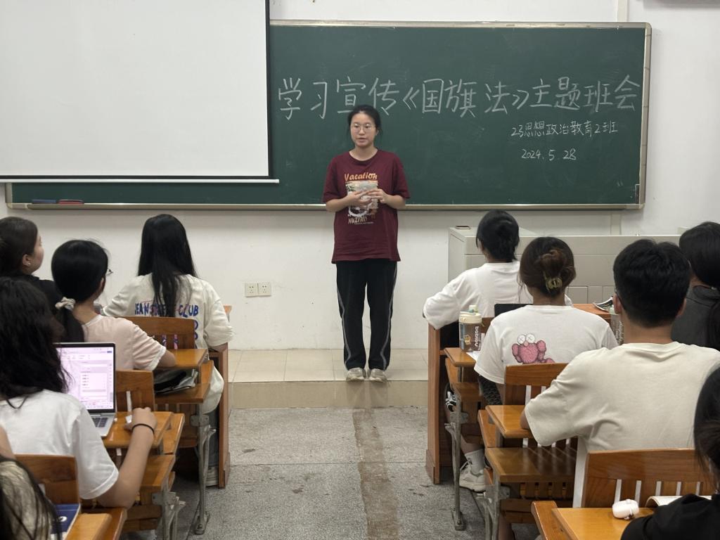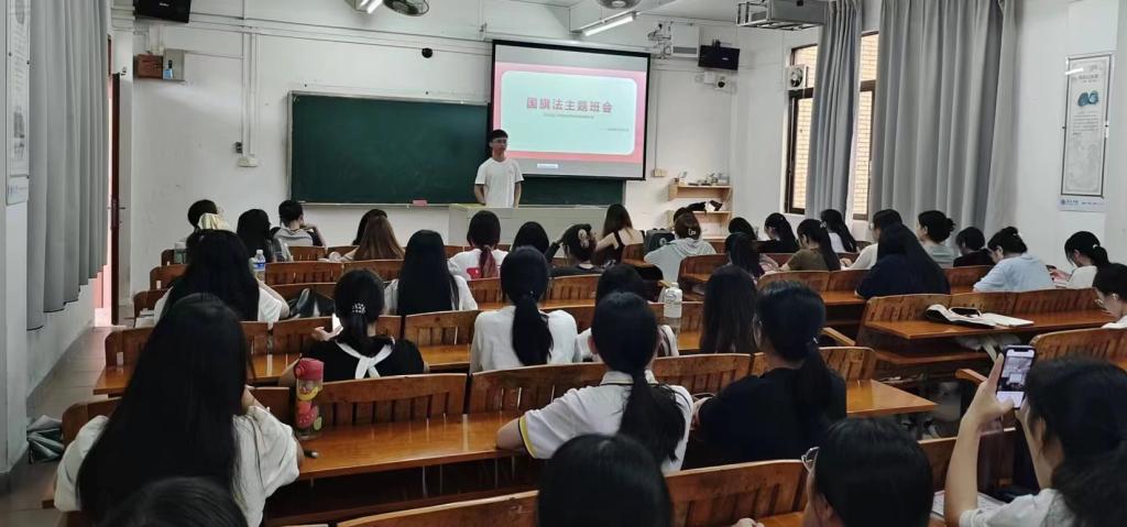 公司研究生和本科生各班级开展了学习宣传《国旗法》主题班会活动。在班主任的指导下,各班级通过PPT专题讲解、观看教育视频、小组讨论以及知识竞答等多种方式,使同学们深刻领会国旗的重要象征意义及其神圣不可侵犯性,明确维护国旗尊严中的责任和义务,并学习正确使用和保护国旗的方法。同学们纷纷表示,将自觉遵守《国旗法》,在日常生活中尊重和爱护国旗。
