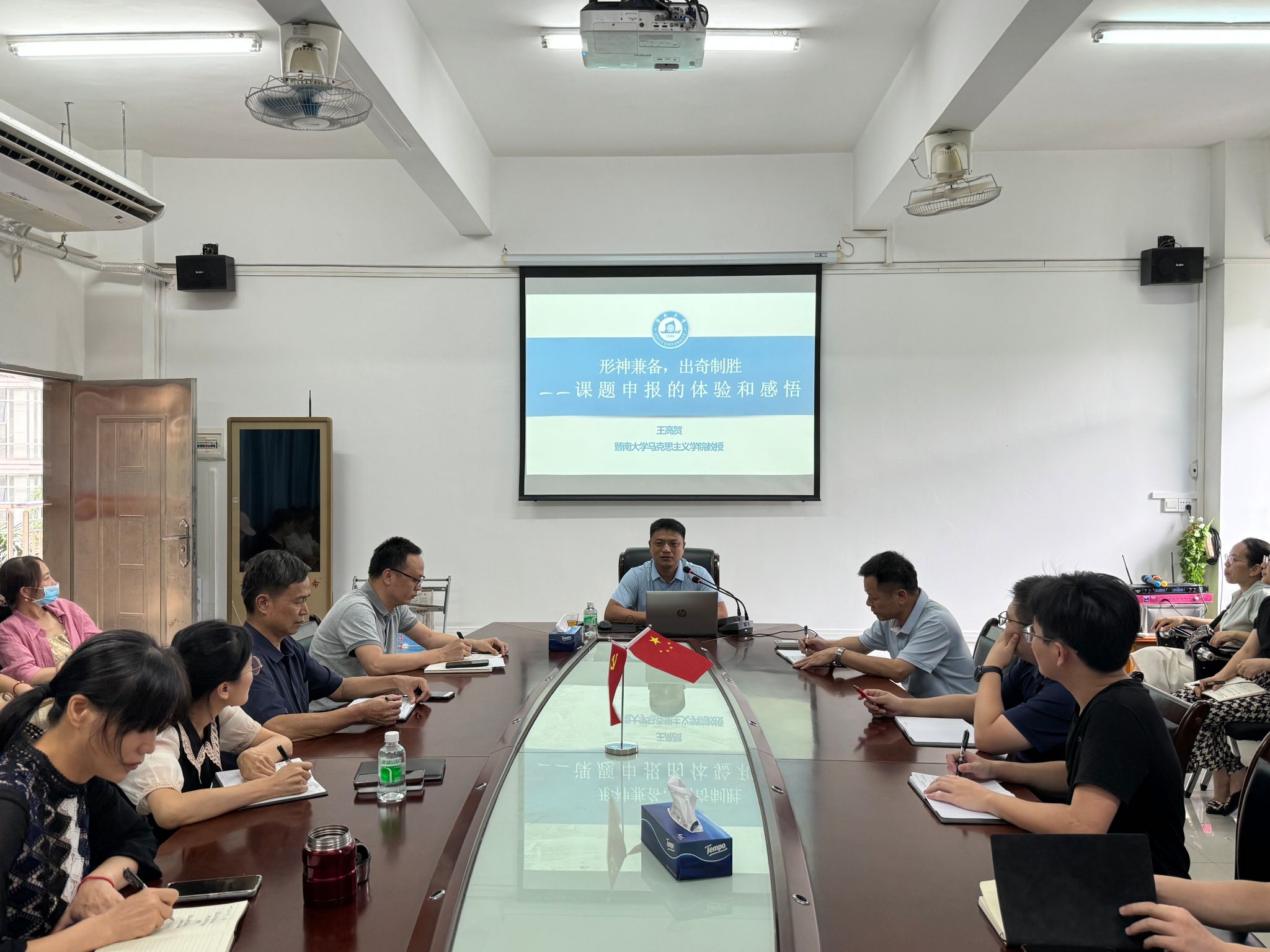 王高贺以“形神兼备,出奇制胜——课题申报的体验和感悟”为题,结合自身获批的两项国家社科基金项目申报经历,围绕选题、论证、申报书撰写和体会等方面分享了课题申报经验和心得体会。他强调要站在国家和人民的高度来思考选题,多关注社会热点和学术前沿,将国家需求和个人兴趣有机结合。同时,他通过现场示范的方式讲授了国家社科基金项目申报书的撰写技巧和方法。最后分析了目前申报各级各类课题的形势,鼓励球速体育老师要树立信心,鼓起勇气,大胆尝试,积极申报,同时脚踏实地,苦心钻研,多向同行和专家请教,避免闭门造车。