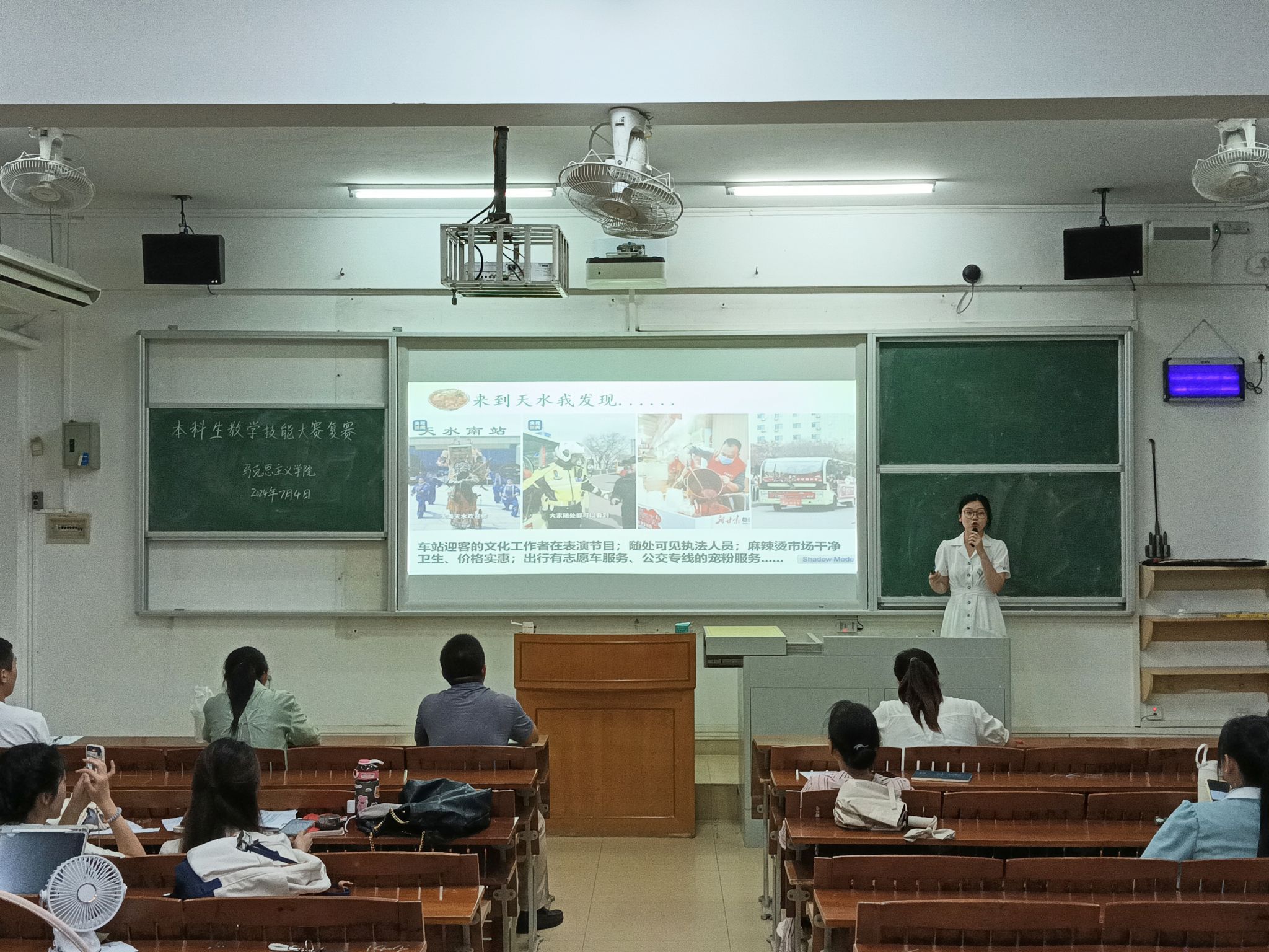 本网讯 7月4日晚,公司在第二教学楼104室举办2024年度本科生教学技能复赛,旨在通过实践检验和提升员工们的教学能力,同时为省赛选拔优秀选手。公司易明副教授、方拥香副教授、朱晶老师、唐心雨老师、王磊老师出席担任评委。