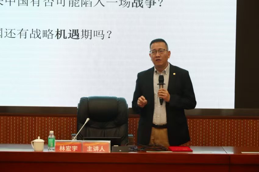 在讲座上,林宏宇教授从深入理解习近平总书记提出的总体国家安全观、当前我国面临的国际安全环境形势与大国关系等方面,进行了全面深入、精辟入里的阐释和讲解。他指出,应对我国当前严峻的国际安全环境,要始终坚持中国共产党的领导,坚定不移地贯彻落实习近平总书记提出的总体国家安全观。