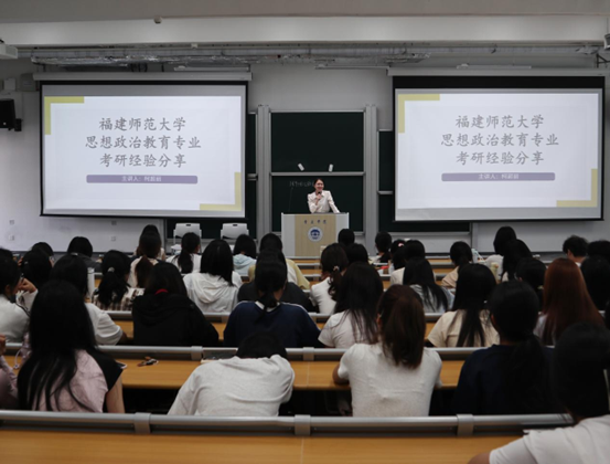 分享会上,考研成功“上岸”的2021级毕业生紧扣思想政治教育专业考研特点,围绕择校、备考科目、学习方法、心态调整等方面展开深度分享。她们从学硕和专硕的区别、院校与专业的选择策略等角度详细介绍了考研的基本信息,分享了公共课和专业课的学习方法与经验,并推荐了一系列考研资源。同时,她们还从前途考虑、合理规划、适度调节等角度,鼓励师弟师妹们结合个人内心想法和社会发展需要进行综合考虑,坚定考研初心,勇往直前。在互动提问环节,同学们就“考研准备的最佳时机”“择校时院校与专业的排序的心路历程”“定向师范生选择”“学硕与专硕区别”“考研与考编的抉择”等实际问题提出困惑。四位分享人与老师结合自身经历,耐心细致地逐一解答。