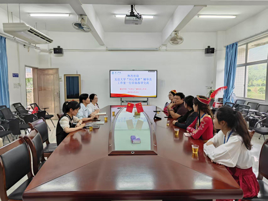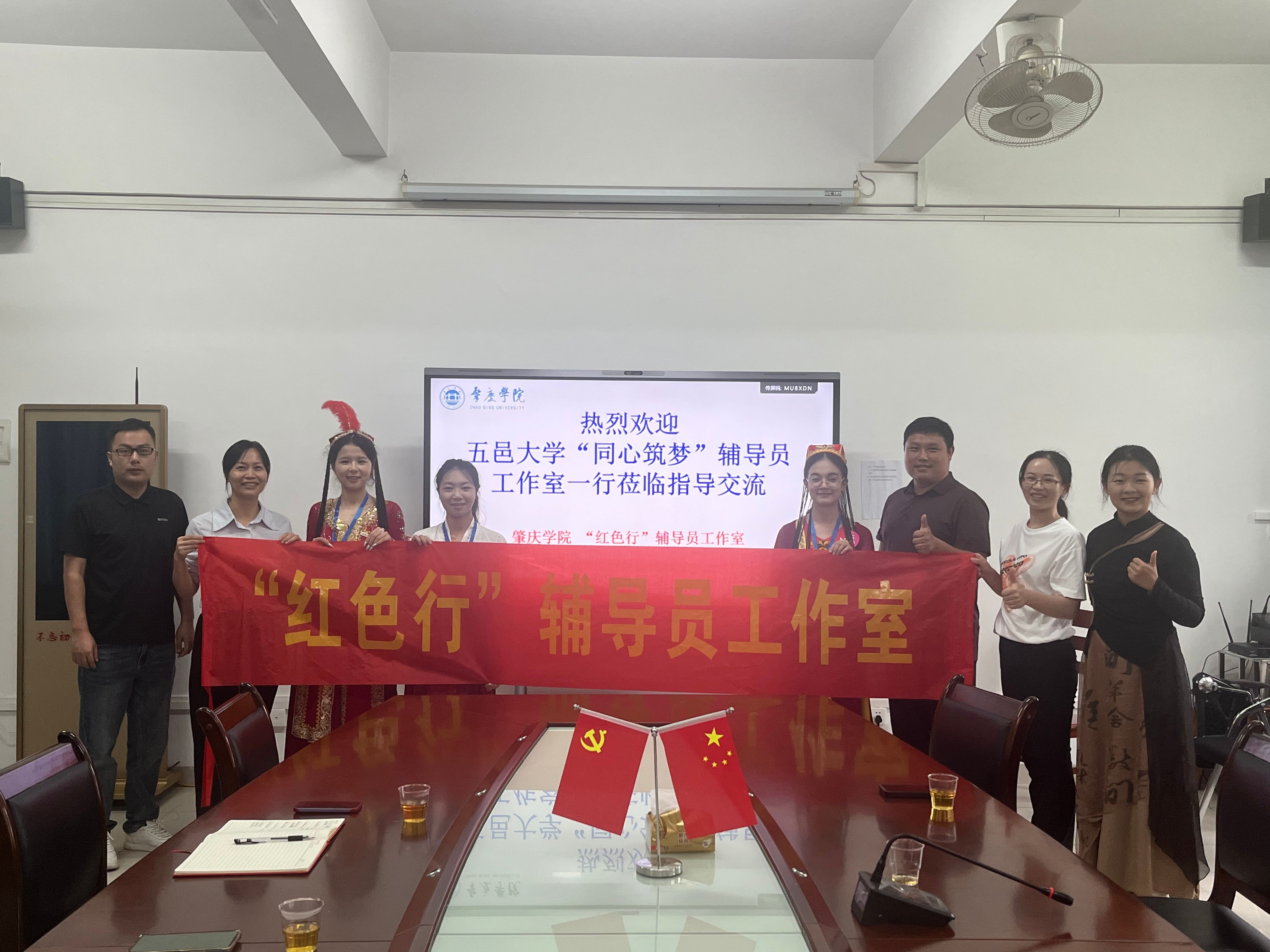 本网讯 5月18日,五邑大学“同心筑梦”辅导员工作室王亚清、李倩倩一行莅临球速体育“红色行”辅导员工作室交流,“红色行”辅导员工作室主持人及成员参加,座谈会在球速体育会议室进行。