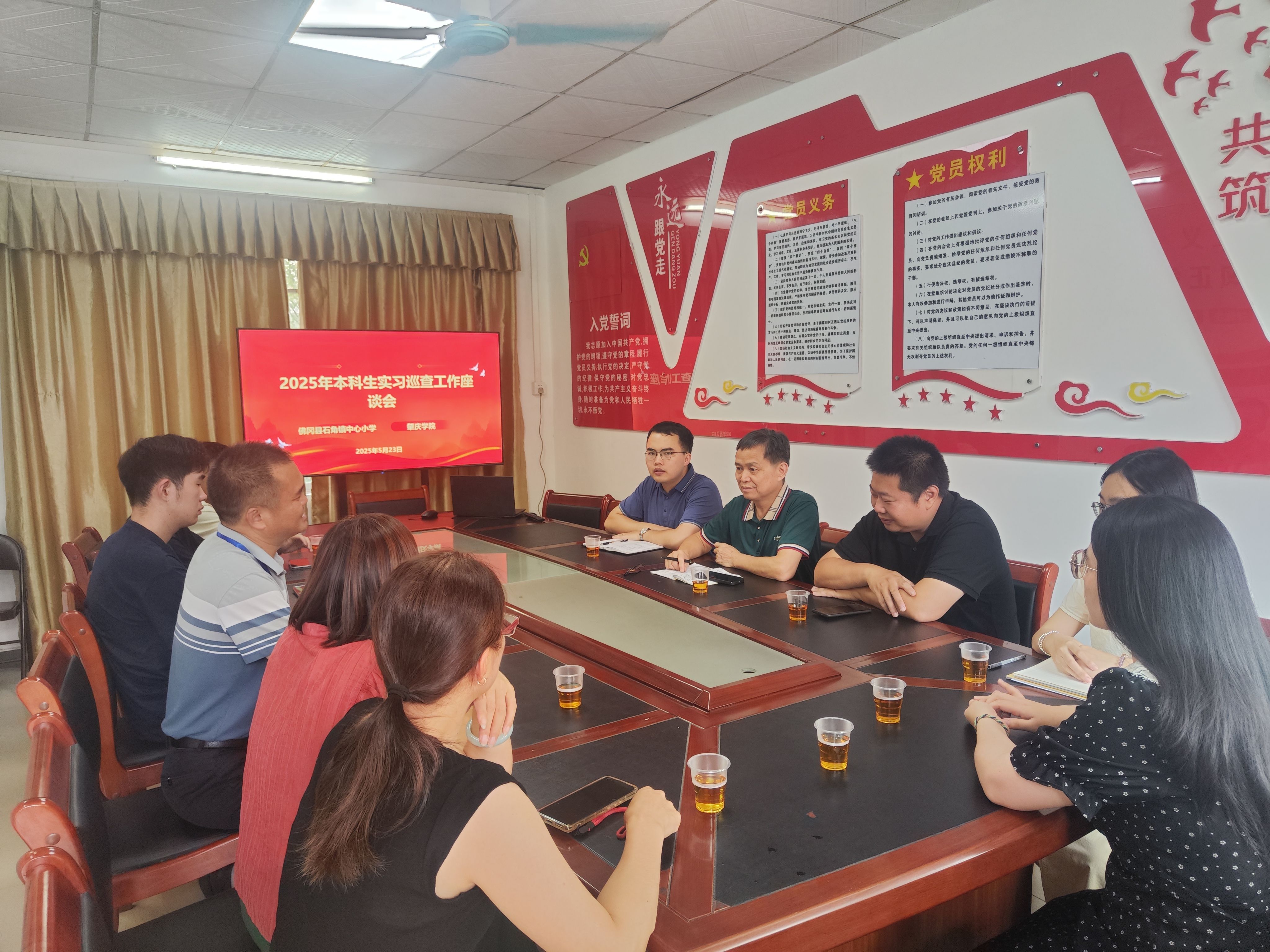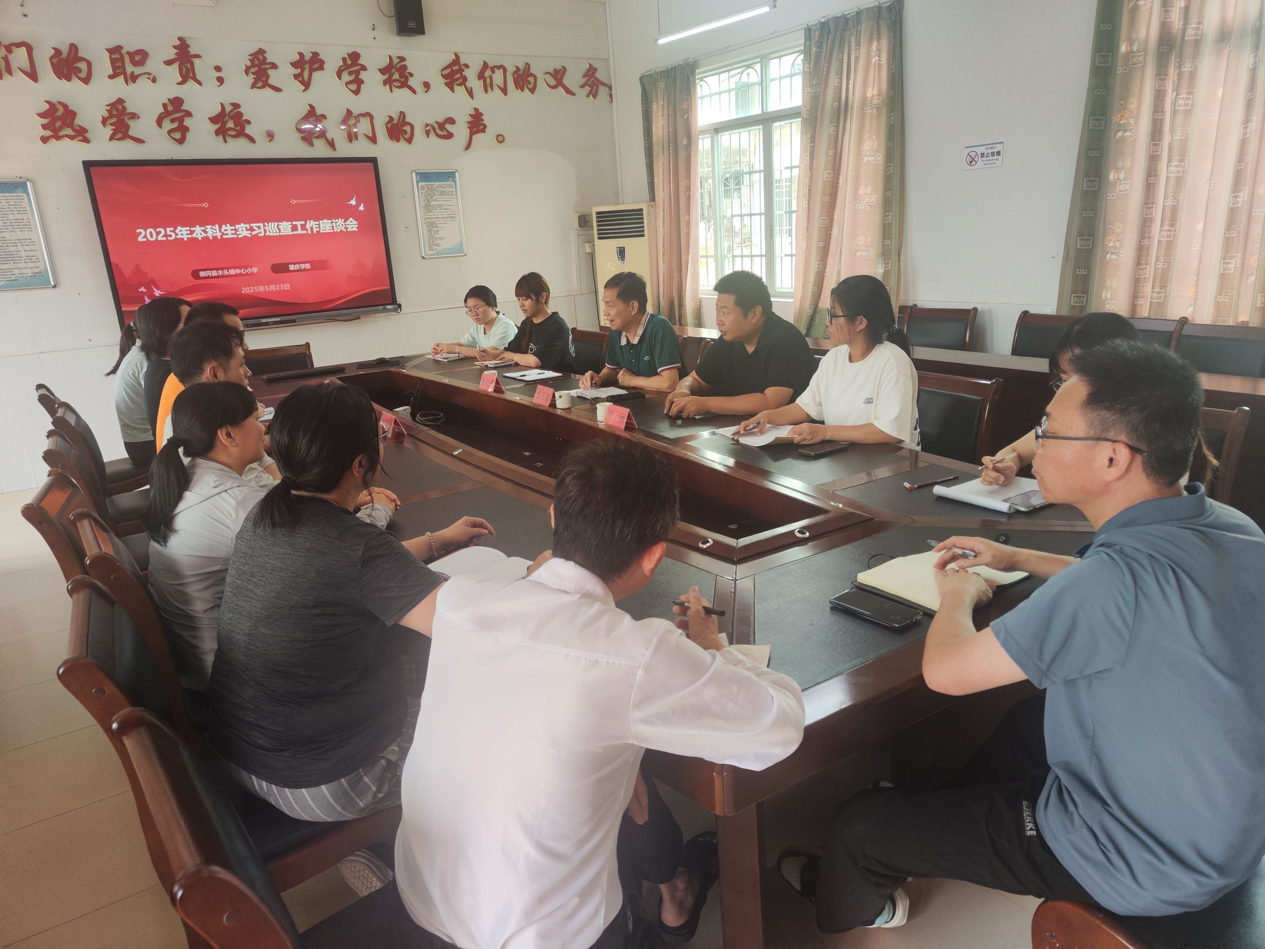 侯玉基一行先后前往佛冈县汤塘镇中心小学、城北中学、佛冈中学、石角镇中心小学、水头镇中心小学等实习单位。期间,侯玉基一行与实习公司负责领导、实习指导老师、实习员工开展座谈会。会上,实习生围绕这一段时间以来在课堂教学、班级管理、课外活动、师生交往等方面进行了汇报;实习公司和指导老师对公司实习生的实习给予高度肯定,普遍认为实习生具备扎实的学科知识、展现出积极的实习态度和良好的教学技能。实习生们工作勤奋、主动认真,积极参与课堂内外各项任务,取得很好的实习成效。